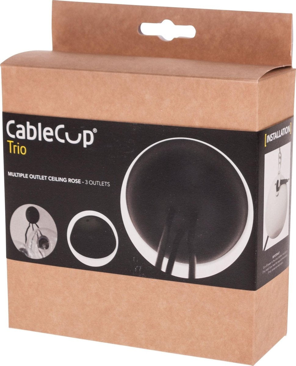 Die Trio-Deckenbaldachin ist für eine Gruppe von drei Pendelleuchten gedacht, die ohne Bohrungen in der Decke aufgehängt werden können. Der CableCup ist aus weichem Material gefertigt, so dass Sie ihn einfach umdrehen können und sich keine Sorgen machen müssen, dass der Schirm bricht oder beschädigt wird. Er ist einfach zu montieren und passt an jede Art von Decke.