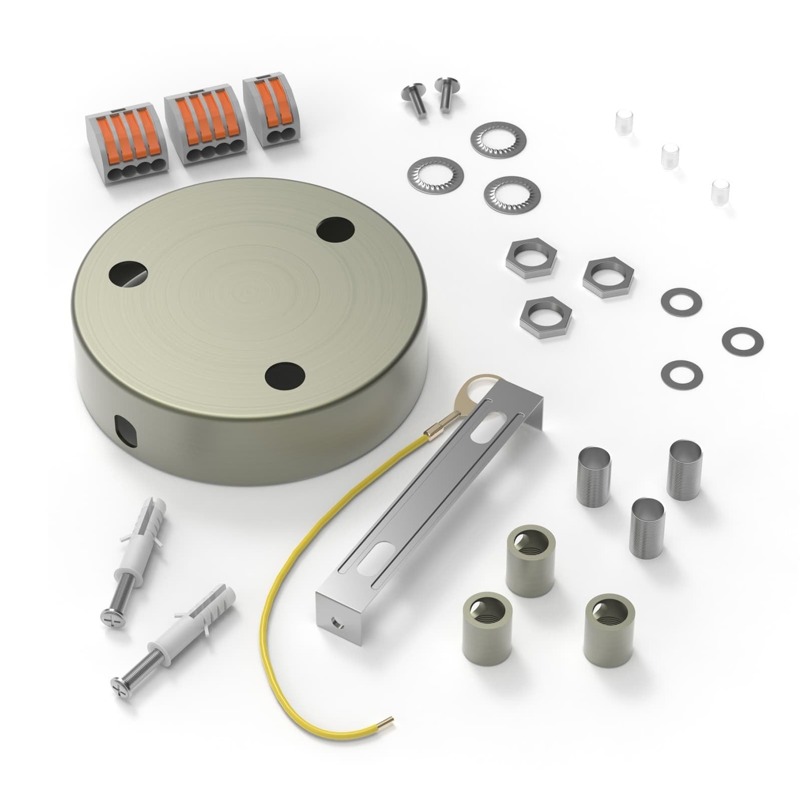Dieses Calex Baldachin aus Metall mit ein Loch is in der Farbe Matt Bronze. Dieser Deckenbaldachin is für 3 Kabel geeignet, das sowohl 2-polig als auch 3-polig sein kann.