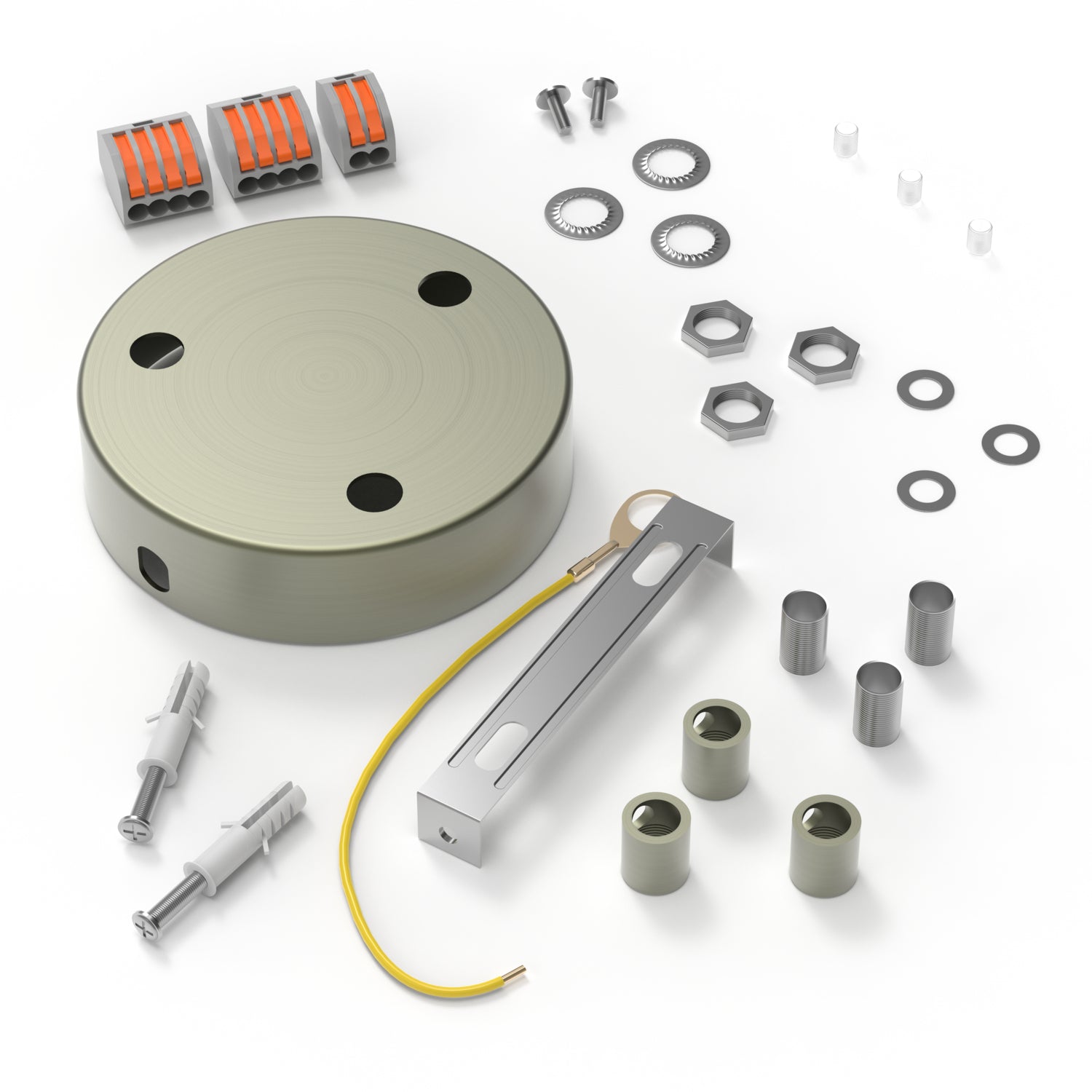 Eine Zugentlastung sorgt dafür, dass das Gewicht Ihrer Lampe sicher verteilt wird, und verringert den Druck, den die Lampe oder der Lampenschirm auf die Armatur ausüben. Ohne Zugentlastung hängt das Gewicht der Lampe nur von den Kupferdrähten ab, und Sie riskieren, die Kupferdrähte aus den Anschlusspunkten einer Armatur oder eines Klemmenblocks herauszuziehen.