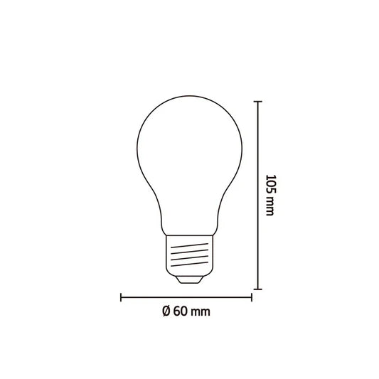 Die Lampe hat eine E27-Fassung, sodass sie in die meisten Standardfassungen passt. Diese Lichtquelle hat einen Durchmesser von 60 mm und eine Höhe von 105 mm.