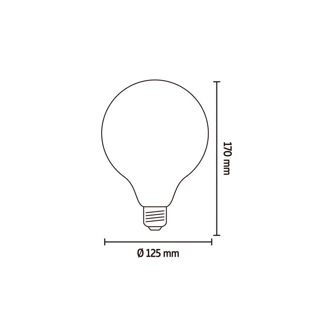 Die Lampe hat eine E27-Fassung, sodass sie in die meisten Standardfassungen passt. Diese Lichtquelle hat einen Durchmesser von 125 mm und eine Höhe von 170 mm.