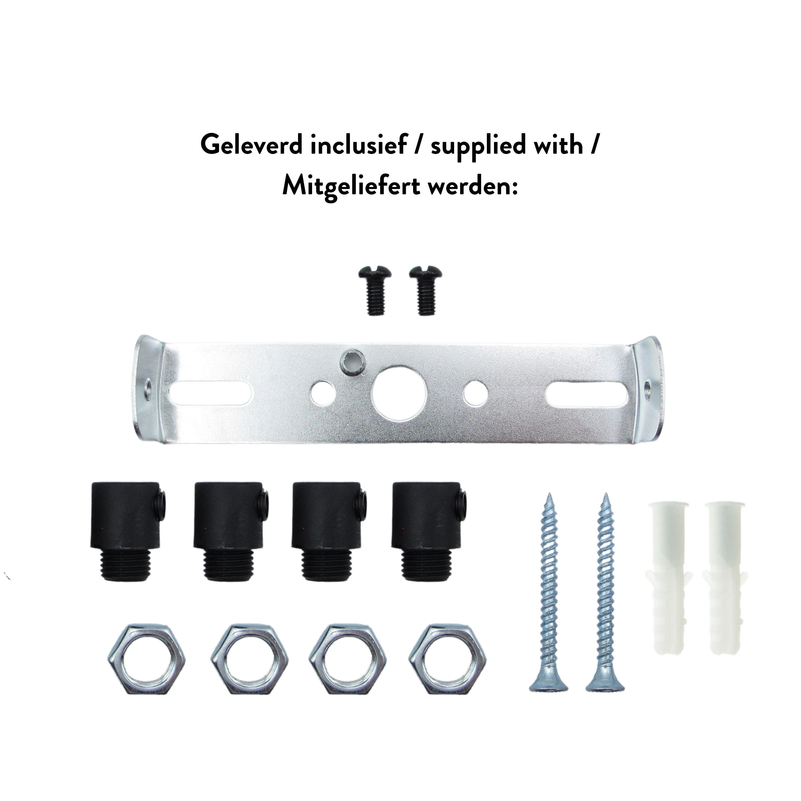 ✓ Deckenbefestigungsmaterial (Bügel, 2 Schrauben + 2 Dübel)