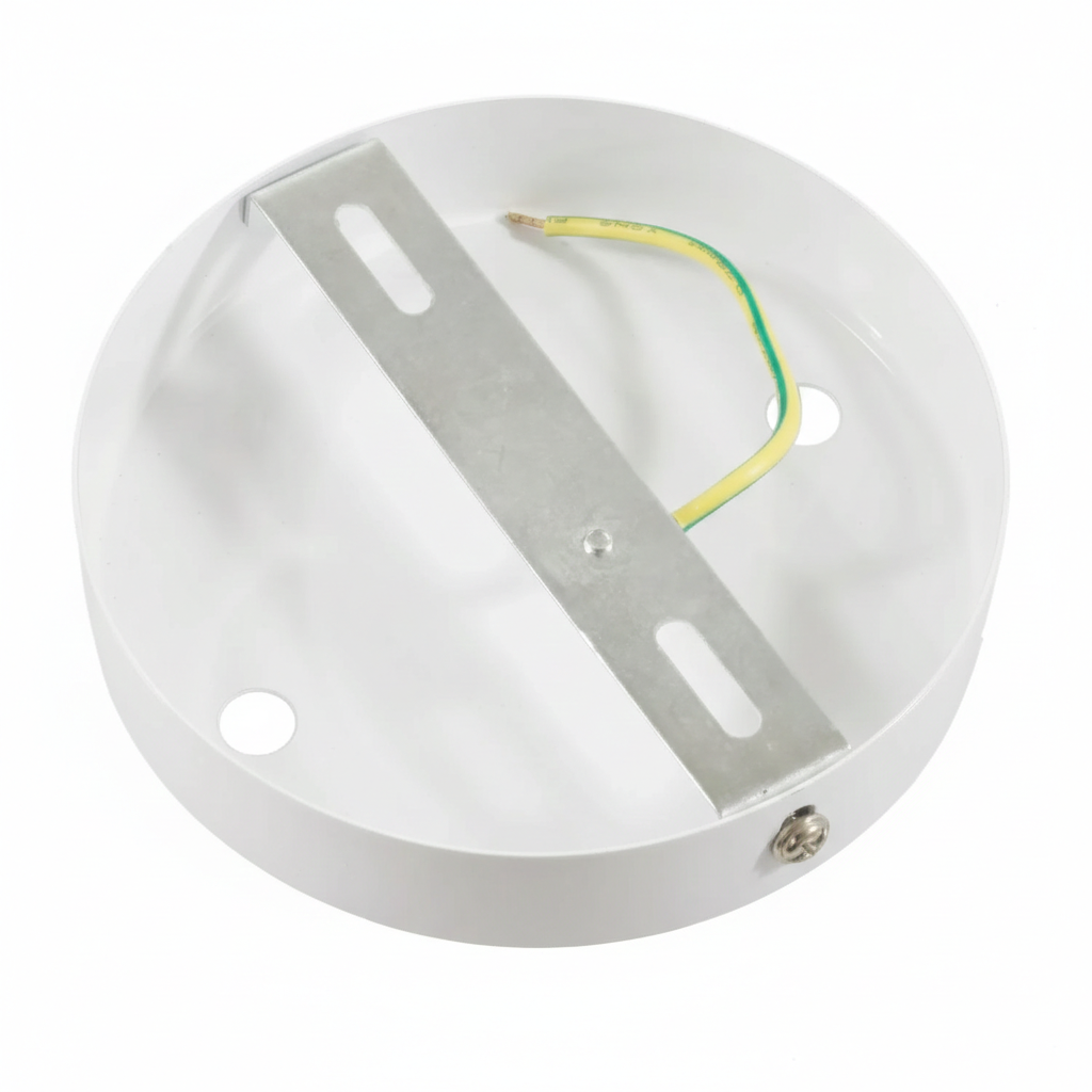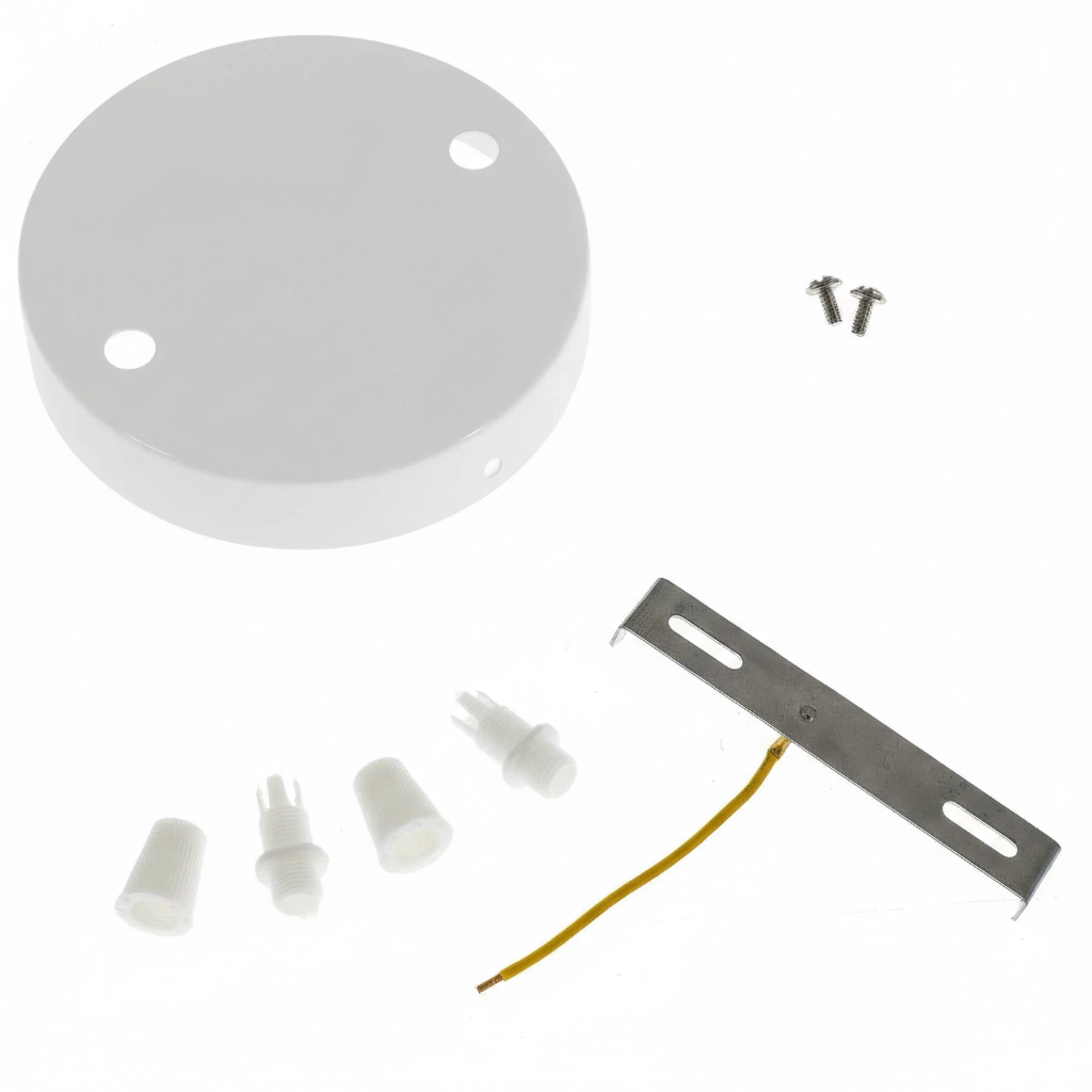 Der Deckenbaldachin hat einen Durchmesser von 120 mm und ist 25 mm hoch. Dieser moderne Deckenbaldachin aus Metall hat einen robusten Look. Standardmäßig inklusive Montagematerial und 2 passenden Zugentlastungen.