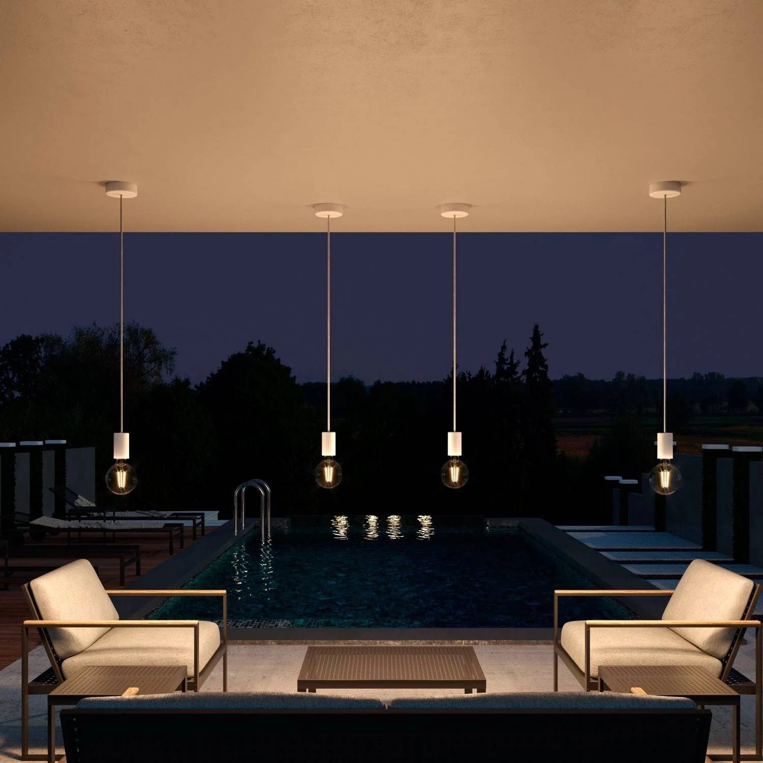 Ob Sie eine Terrasse gemütlich beleuchten oder Ihre Außenküche attraktiv gestalten wollen, diese Deckenkappe ist die ideale Basis für Ihre maßgeschneiderte Außenleuchte. Kombinieren Sie die EIVA-Deckenkappe mit einer passenden EIVA-Leuchte und unserer Outdoor-Textilschnur für eine einzigartige Außenleuchte. Diese Deckenkappe ist auch in einer schwarzen Version erhältlich.