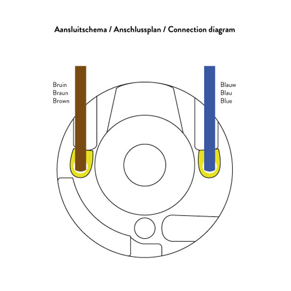 Es handelt sich um eine nicht geerdete Fassung, die für den Anschluss an ein 2-poliges Kabel geeignet ist. Die Armatur kann auch an ein 3-poliges Kabel angeschlossen werden, jedoch kann in diesem Fall der Erdungsdraht nicht angebracht werden. Diese Fassung ist nicht für die Verwendung in Feuchträumen, wie z. B. dem Badezimmer, geeignet.
