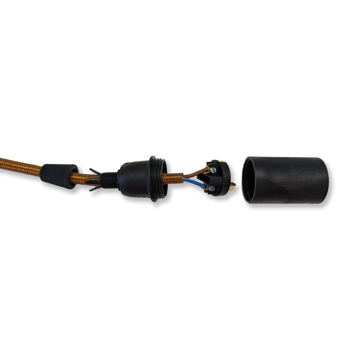 Creëer een klassieke, retro look met deze mat zwarte kunststof E14 fitting gemaakt van kunststof. Ideaal voor het gebruik bij lichtbronnen met een kleine lampenvoet (E14) en kleinere lampenkappen. Deze eenvoudige fitting heeft een gladde structuur en is geschikt voor de aansluiting op 2-polige snoeren.