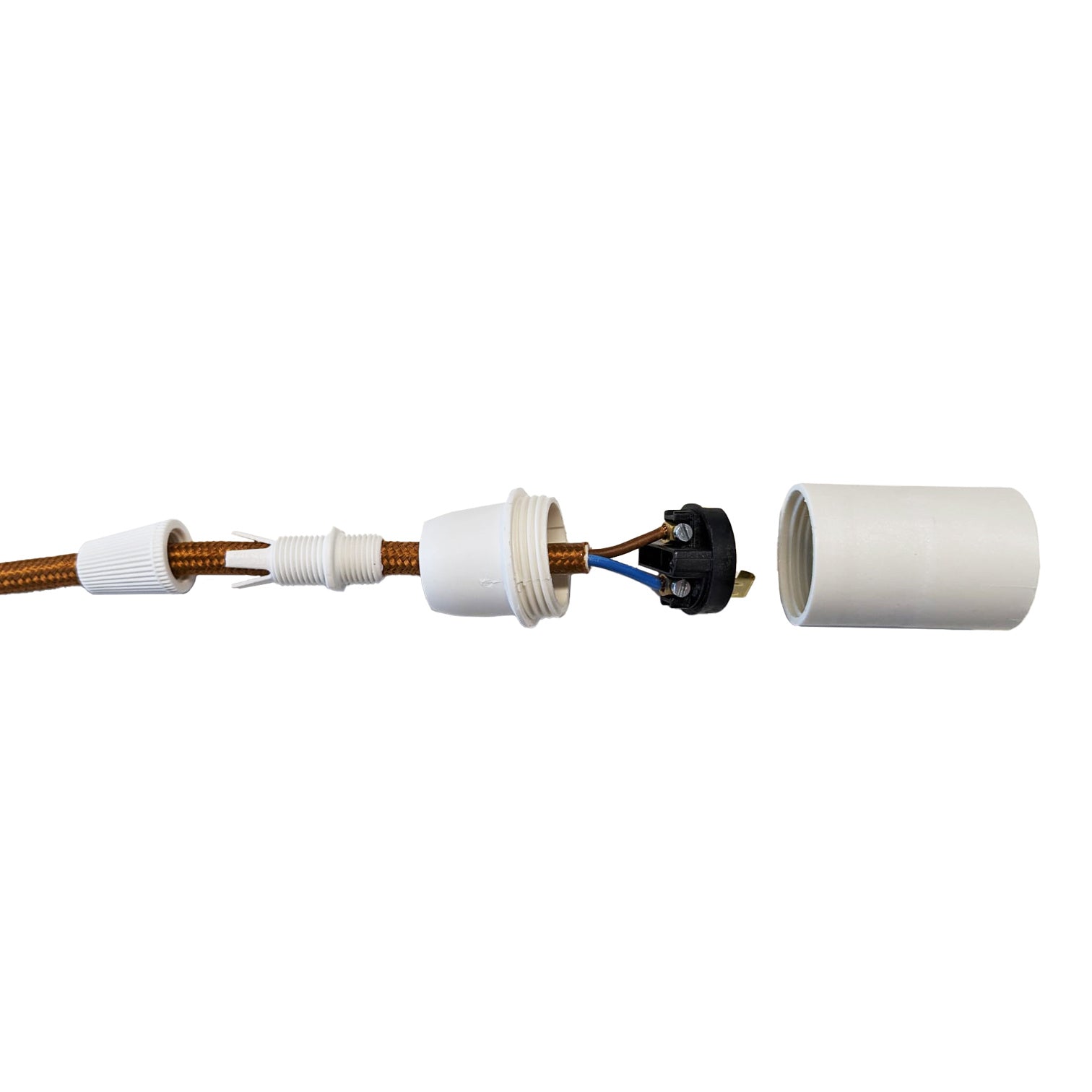 Creëer een klassieke, retro look met deze mat witte kunststof E14 fitting gemaakt van kunststof. Ideaal voor het gebruik bij lichtbronnen met een kleine lampenvoet (E14) en kleinere lampenkappen. Deze eenvoudige fitting heeft een gladde structuur en is geschikt voor de aansluiting op 2-polige snoeren.