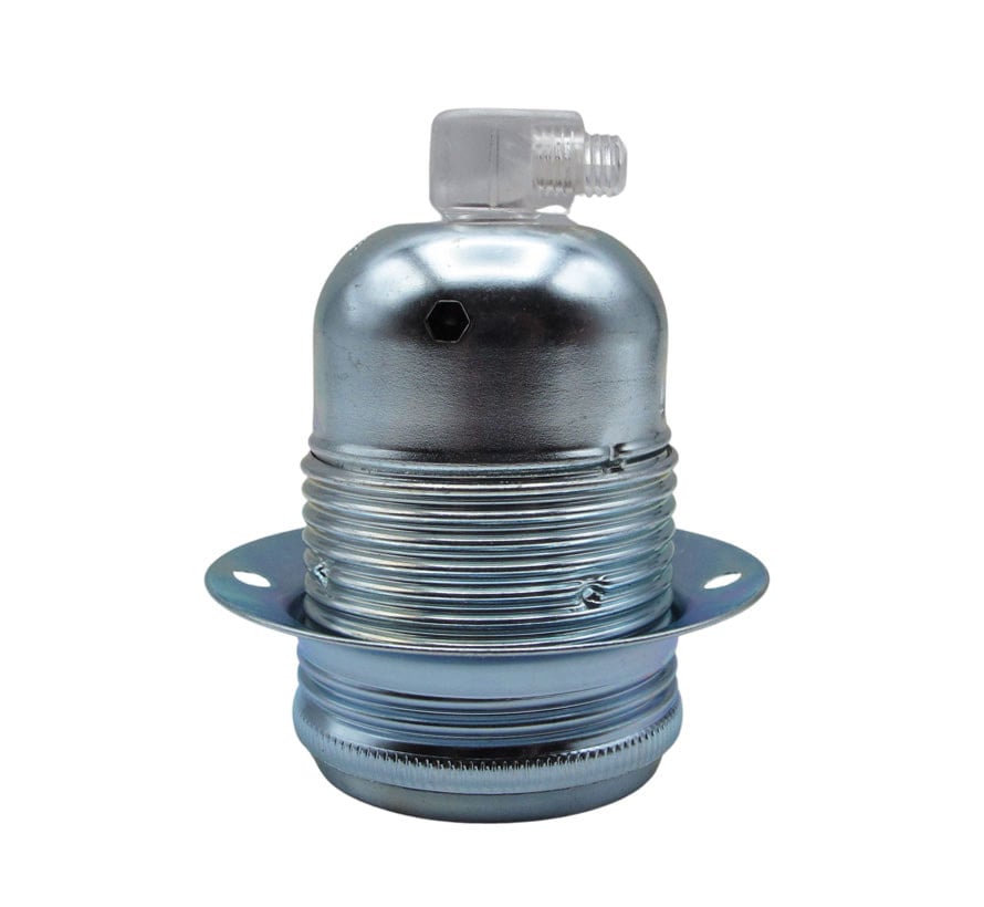 Dies ist eine geerdete Fassung und zum Anschluss an ein 3-poliges Kabel geeignet. Für diese Fassung kann auch ein 2-poliges Kabel verwendet werden, jedoch fehlt dann der Anschluss des Erdungskabels, sodass die Lampe nicht geerdet ist. Bei Verwendung eines 3-poligen Kabels eignet sich diese Fassung für den Einsatz in feuchten Bereichen wie dem Badezimmer.