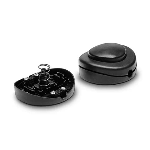 Dieser runde schwarze Fußschalter mit Knopf hat einen Durchmesser von 65 mm und eine Höhe von 23 mm.