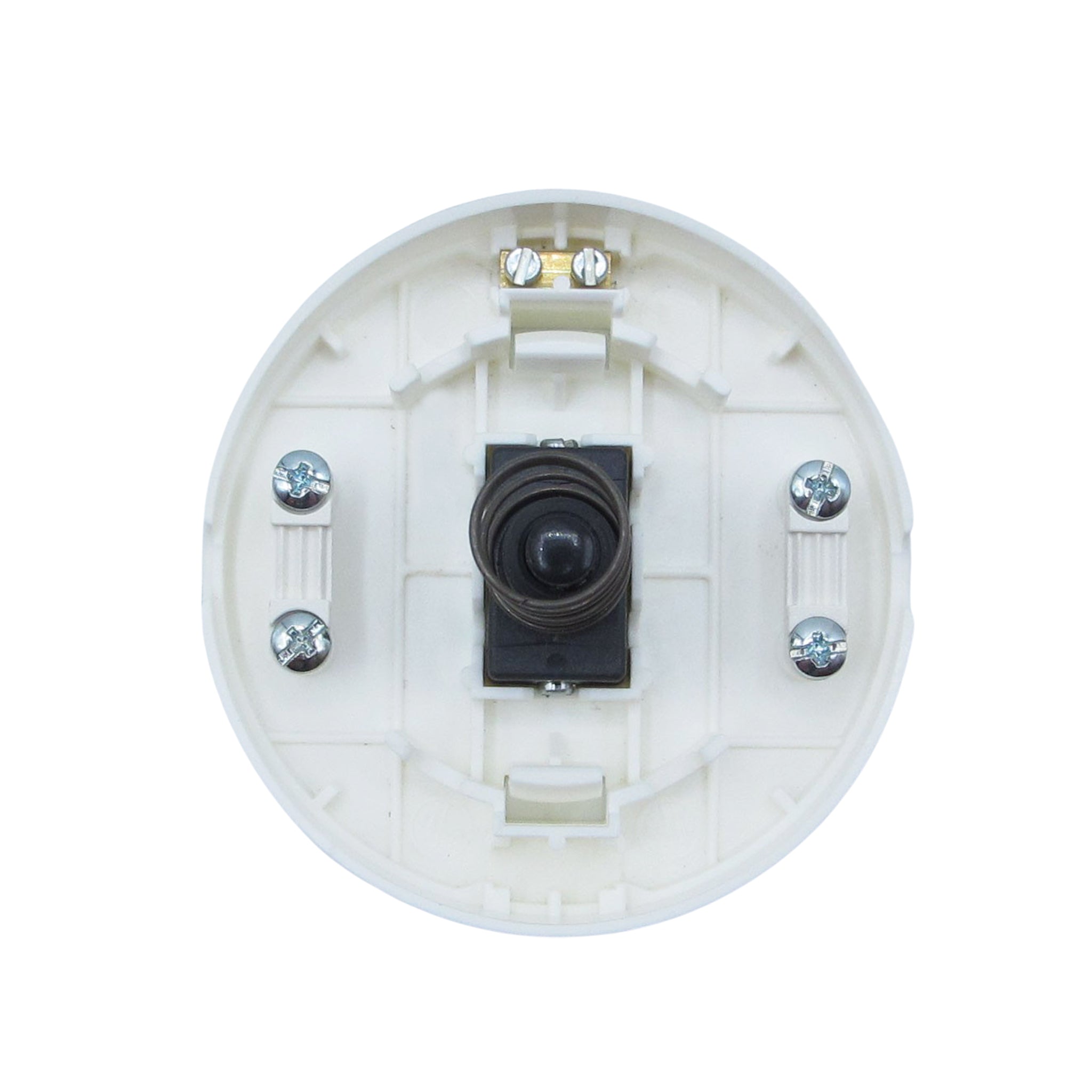 Dieser runde weiße Fußschalter mit Knopf hat einen Durchmesser von 65 mm und eine Höhe von 23 mm.