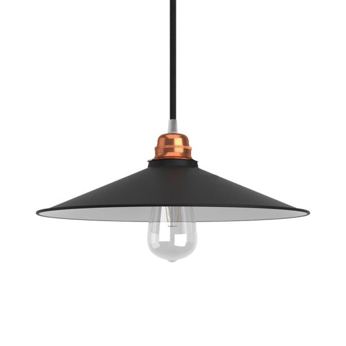Vervollständigen Sie diese Lampenschirm, indem Sie Ihre eigene Textilkabel, die passende Fassung (mit Ring) und die Vintage-Lichtquelle wie diesen ST64-Squirrelcage von Calex (klar) auswählen.