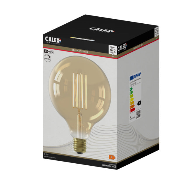 Calex. Die Lichtquelle hat eine Lichtintensität von 470 Lumen, eine Leistungsaufnahme von 4,5 Watt und eine Farbtemperatur von 2100 Kelvin (warmes Licht - CRI80). Verleiht den gleichen warmen Schimmer wie die Glühbirnen von früher.
