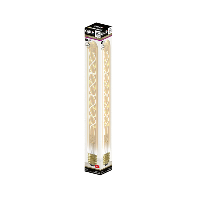 Dit model heeft een diameter van 32 mm, een lengte van 300 mm en is geschikt voor fittingen met E27 schroefdraad. Deze goudkleurige LED lamp van het model T32x300 heeft een lichtopbrengst van 250 Lumen en een verbruik van 3,8 Watt. De kleurtemperatuur is met 2100 Kelvin extra warm.