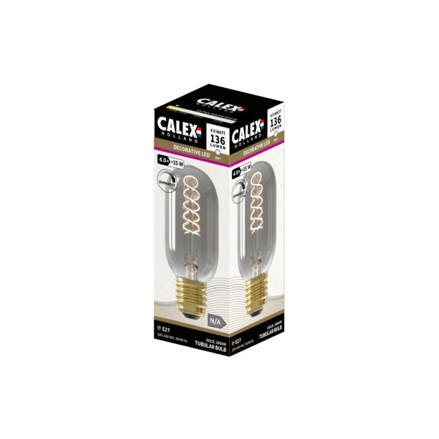 Dieses Modell hat einen Durchmesser von 45 mm, eine Länge von 110 mm und ist für Armaturen mit E27-Schraubengewinde geeignet. Diese Titanium farbige Lichtquelle des Modells T45 (CRI80) hat eine Lichtintensität von 136 Lumen und hat eine Leistungsaufnahme von 4 Watt. Die Farbtemperatur ist bei 1800 Kelvin extra warmweiß.