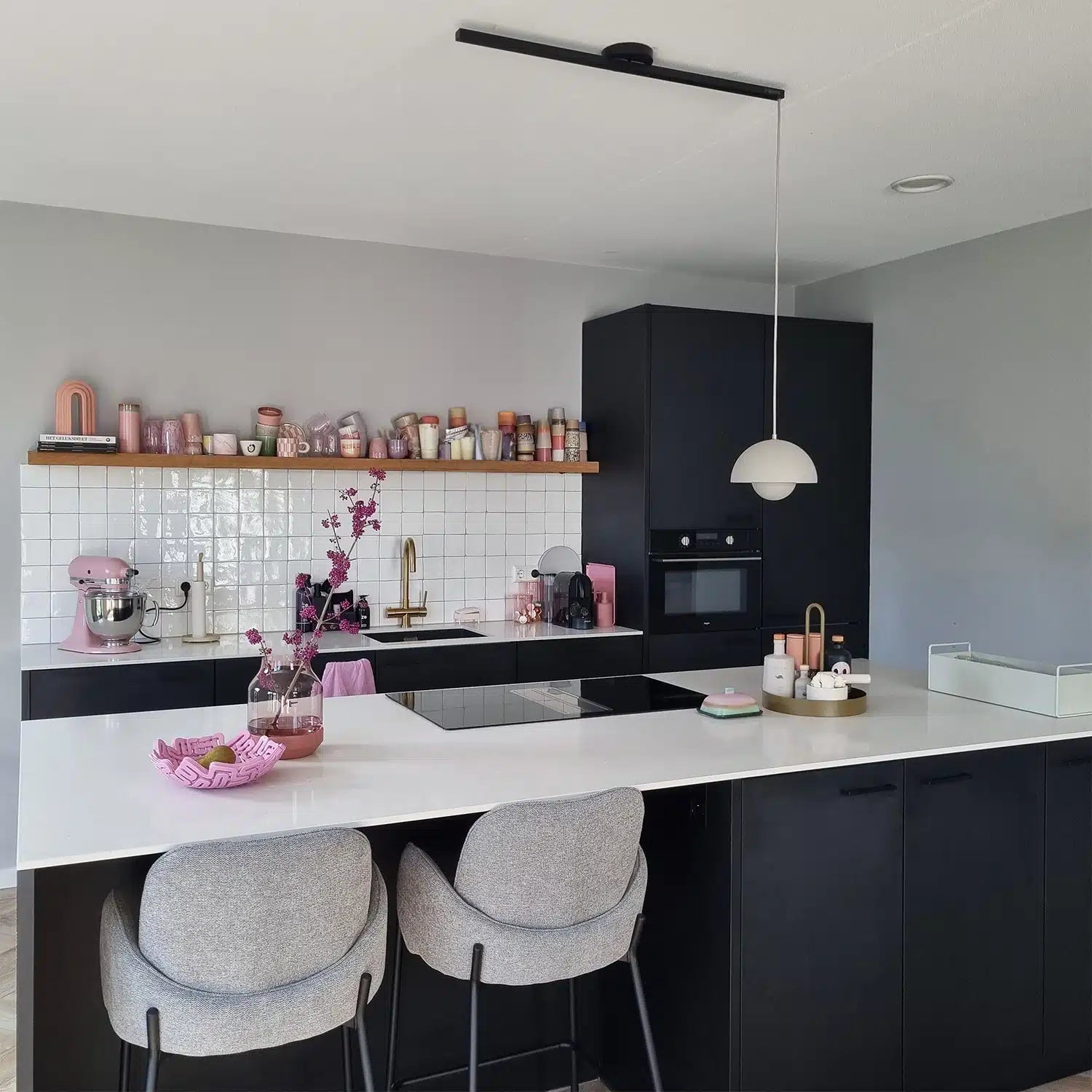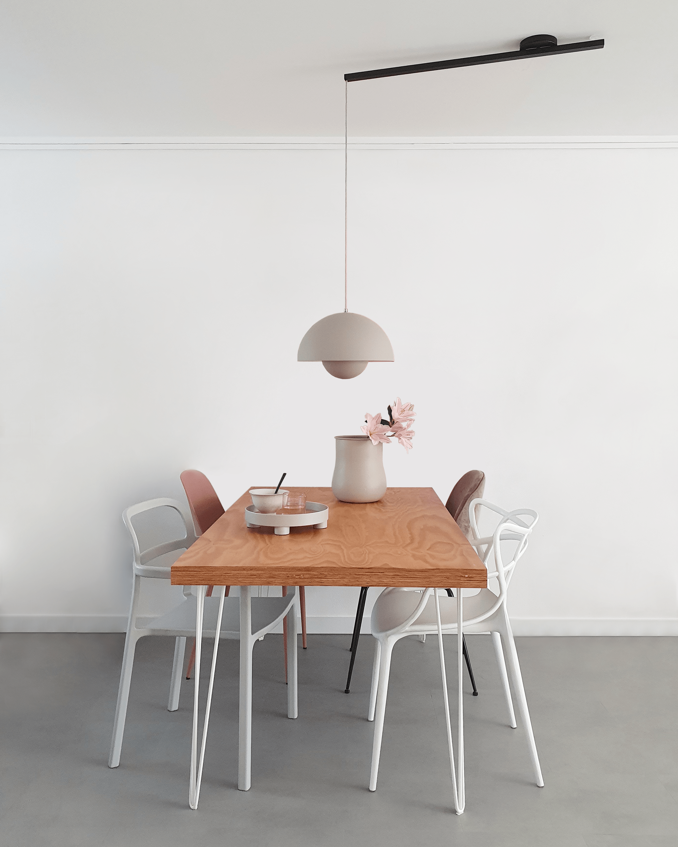 Wenn Sie den Tisch umstellen oder die Einrichtung verändern, sind keine neuen Löcher in der Decke nötig. Auf diese Weise ist das Problem von hässlichen Kabelrinnen und frei hängenden Kabeln endgültig gelöst. Außerdem können Sie dank des speziellen Quick release Ihre Hängelampe vorübergehend vom Lightswing abhängen, was bei einem Fest praktisch ist.