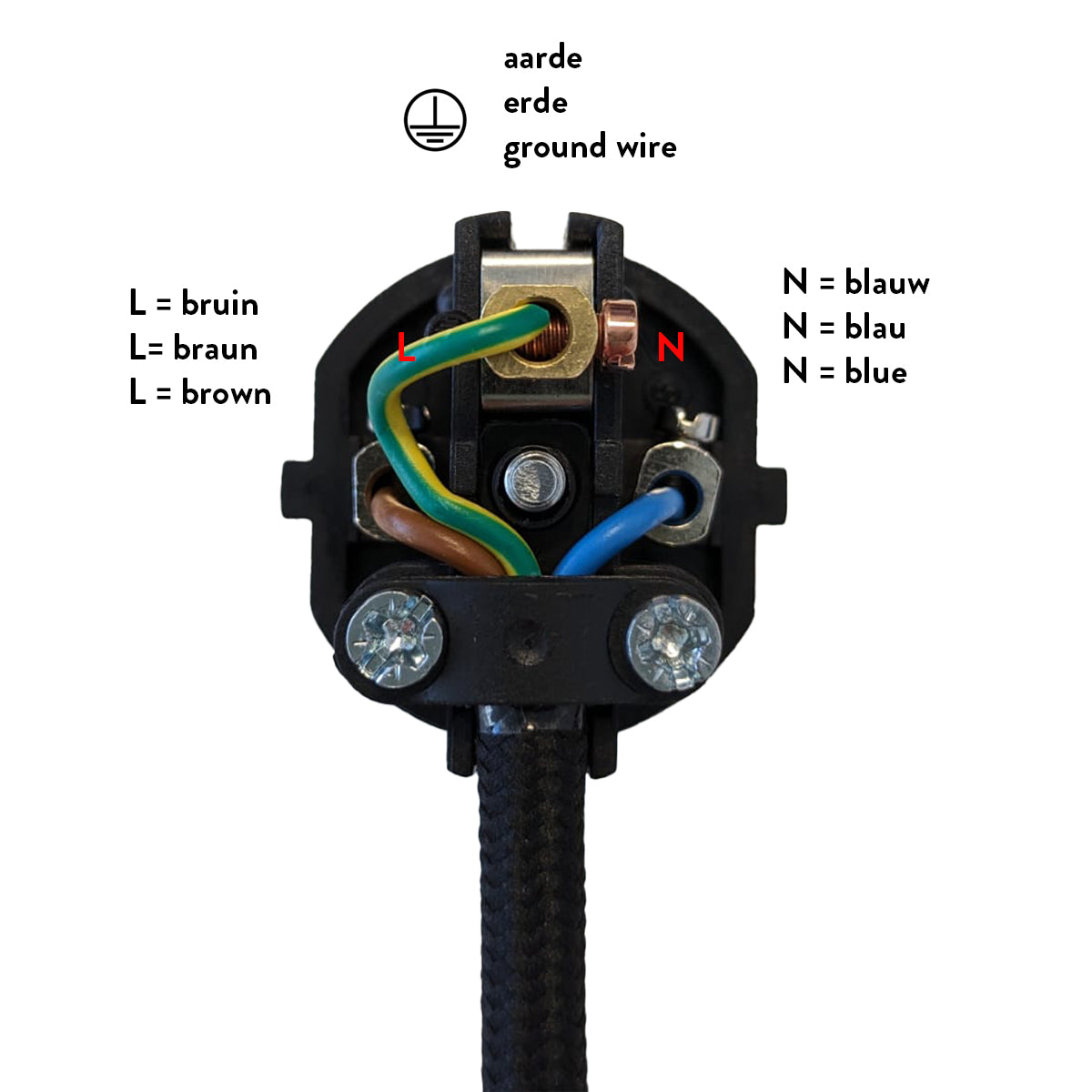 Stecker Schwarz Kabelauslass oben/unten, rund | Bakelit-Look, geerdet