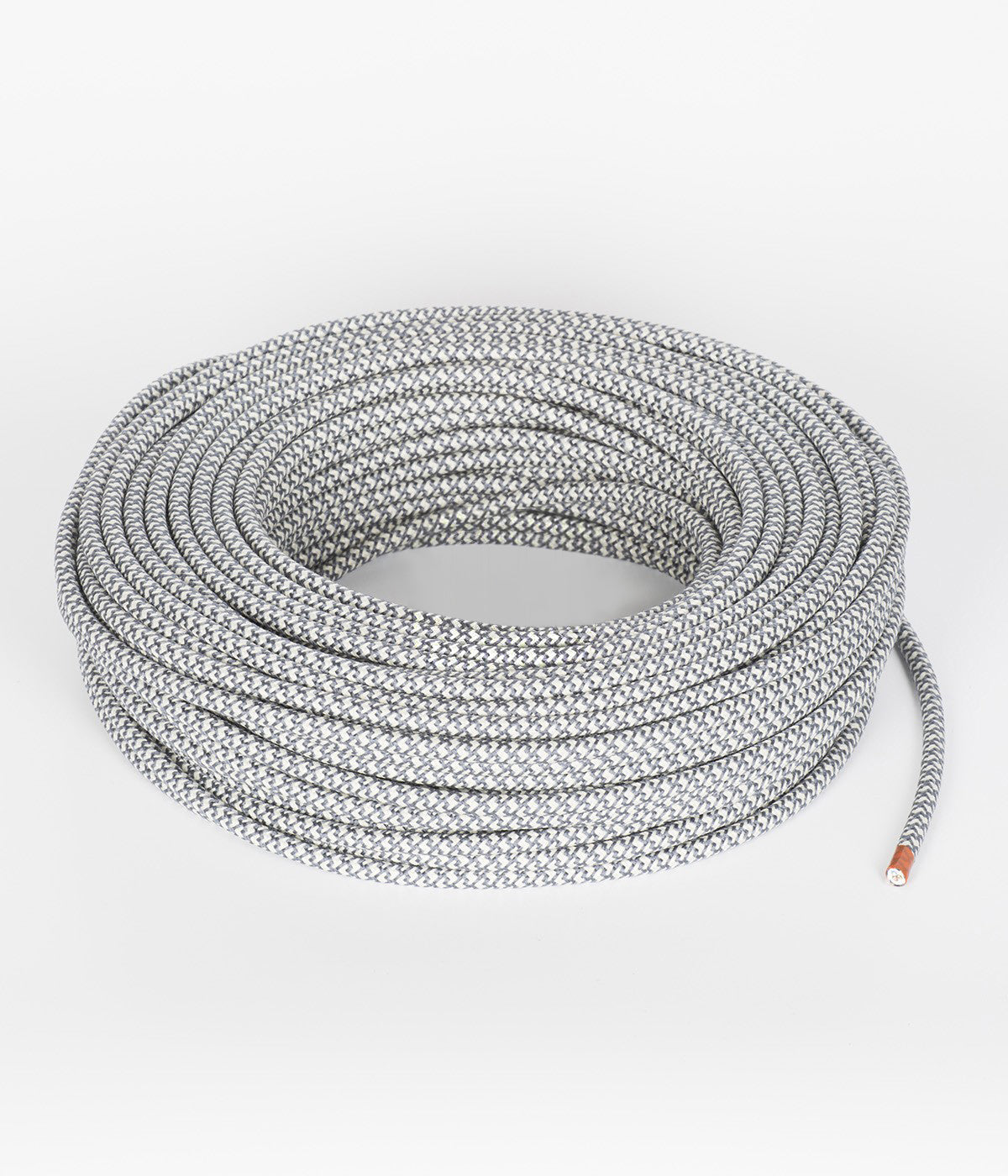 Textilkabel Creme & Grau - rund, leinen | Kreuz Muster