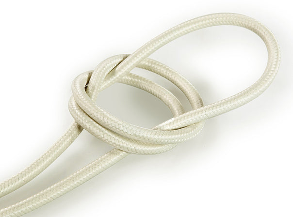 Preis pro Meter, an einem Stück geliefert. Dieses hochwertige Textilkabel ist mit gewebtem Stoff in der Farbe Elfenbein gewickelt. Dieses Produkt ist als 2-poliges (nicht geerdetes) oder 3-poliges (geerdetes) Kabel erhältlich.