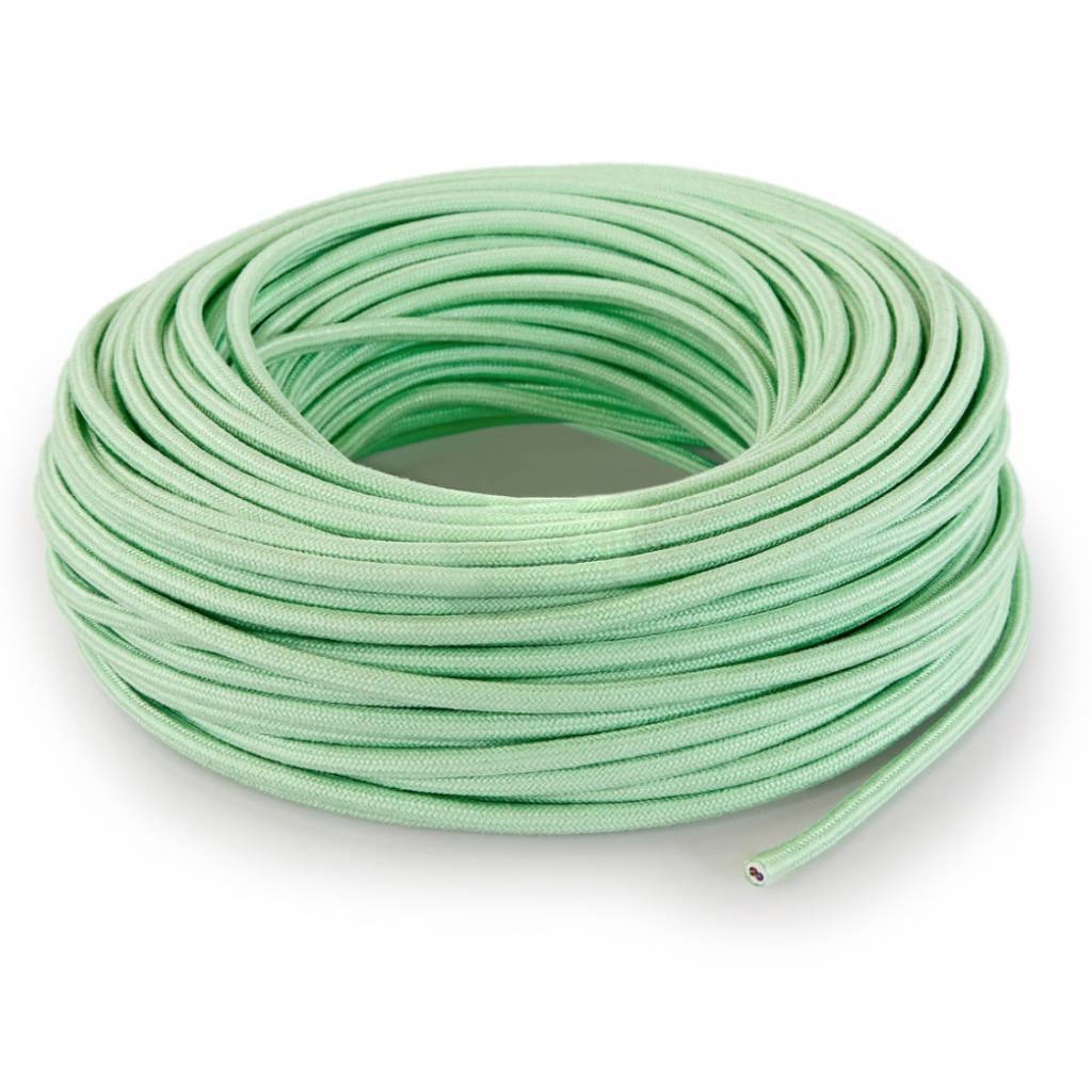Preis pro Meter, an einem Stück geliefert. Dieses hochwertige Textilkabel ist mit gewebtem Leinenstoff in der Farbe Hellgrün gewickelt. Dieses Produkt ist als 2-poliges (nicht geerdetes) Kabel erhältlich.