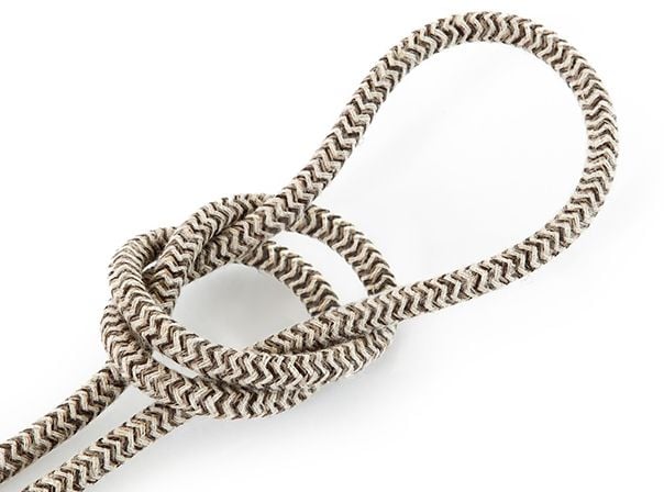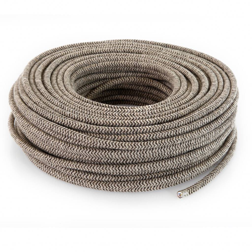 Textilkabel Sand und Braun - rund, leinen | Zick-Zack Muster