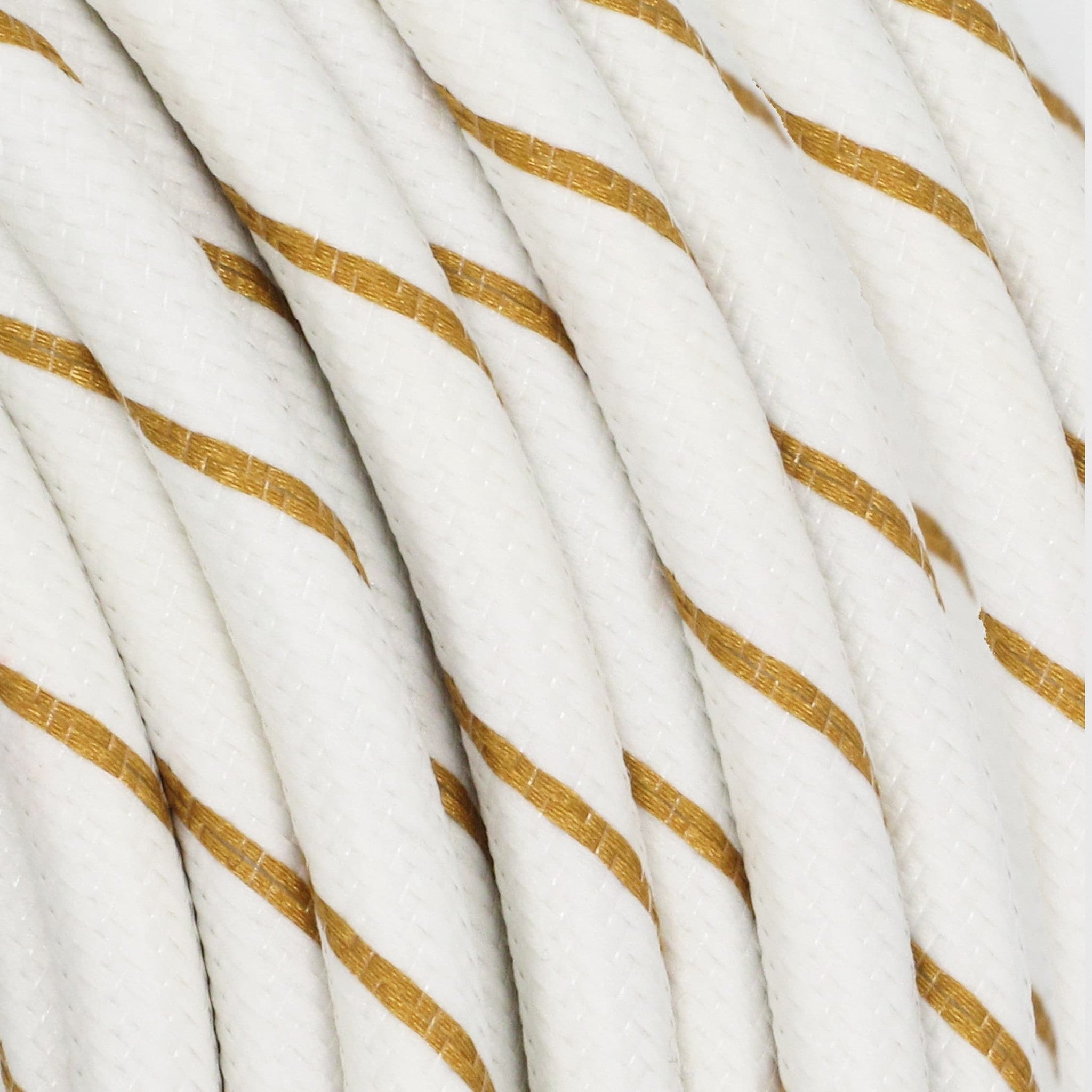 Textilkabel Weiß & Gold - rund | Streifenmuster