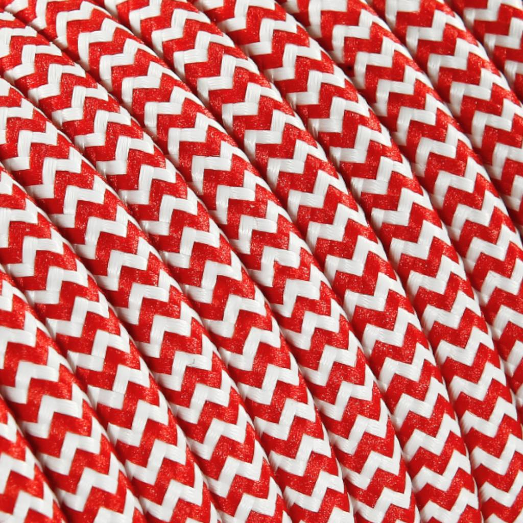 Textilkabel Weiß & Rot - rund | Zick-Zack Muster