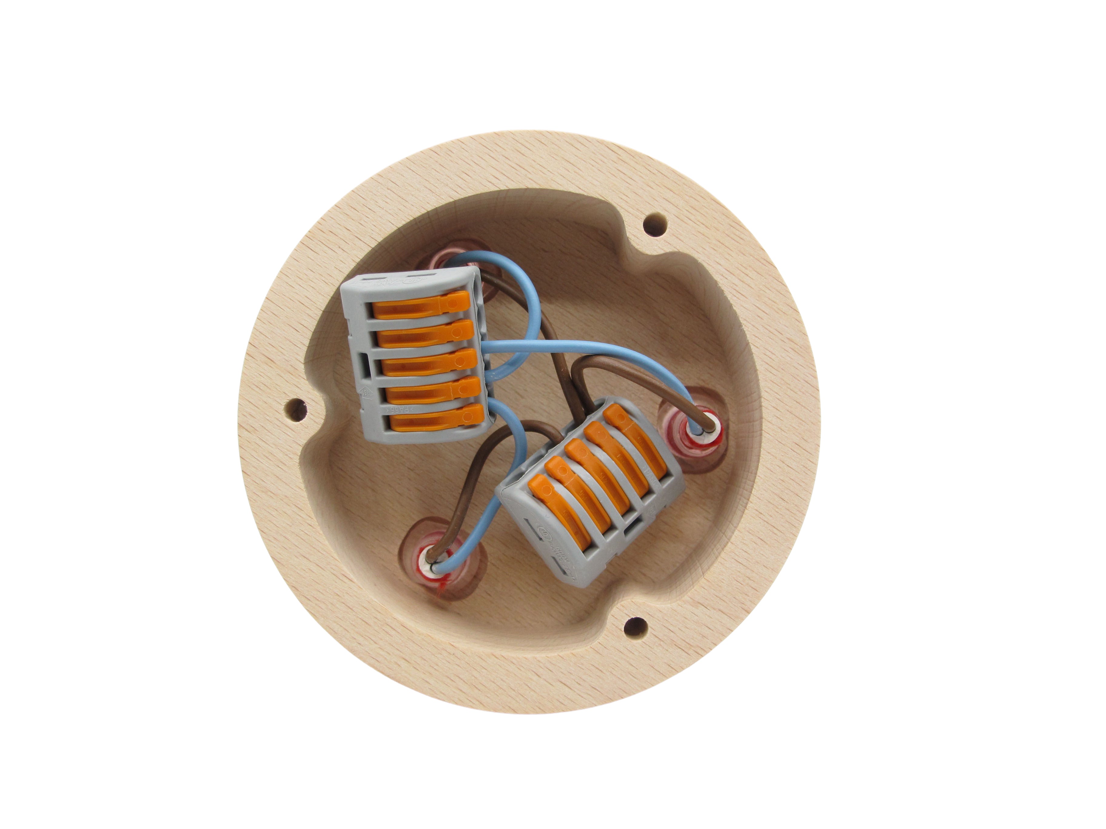 Dadurch ist es möglich, mehrere Lampen an eine Kontaktstelle anzuschließen. Kombinieren Sie verschiedene Wago-Klemmen (2, 3, 5 oder 8 Polige, um die gewünschte Anzahl der durchzuschleifenden Lampen zu erreichen). Verbinden Sie diese Wago-Klemmen mit einem Stück gleichfarbigen Elektrodraht miteinander.