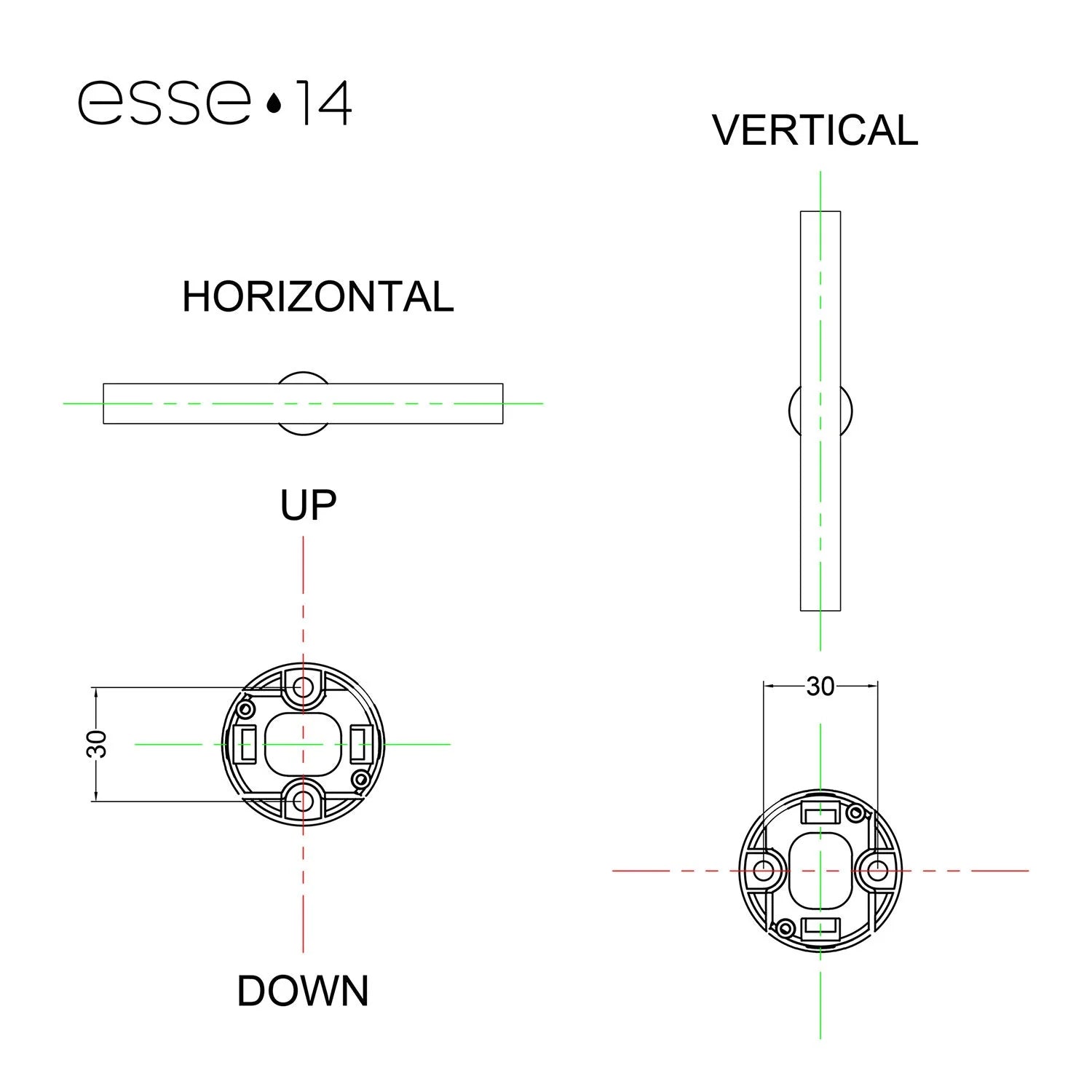 Diese Esse14 IP44 S14d-Fassung für Wand- oder Deckenmontage ist die ideale Lösung für alle, die eine stilvolle und zugleich spritzwassergeschützte Lampenfassung suchen. Sie eignet sich sowohl für den Innen- als auch für den Außenbereich, z. B. im Badezimmer, in der Garage, unter einer Überdachung oder auf der Terrasse.