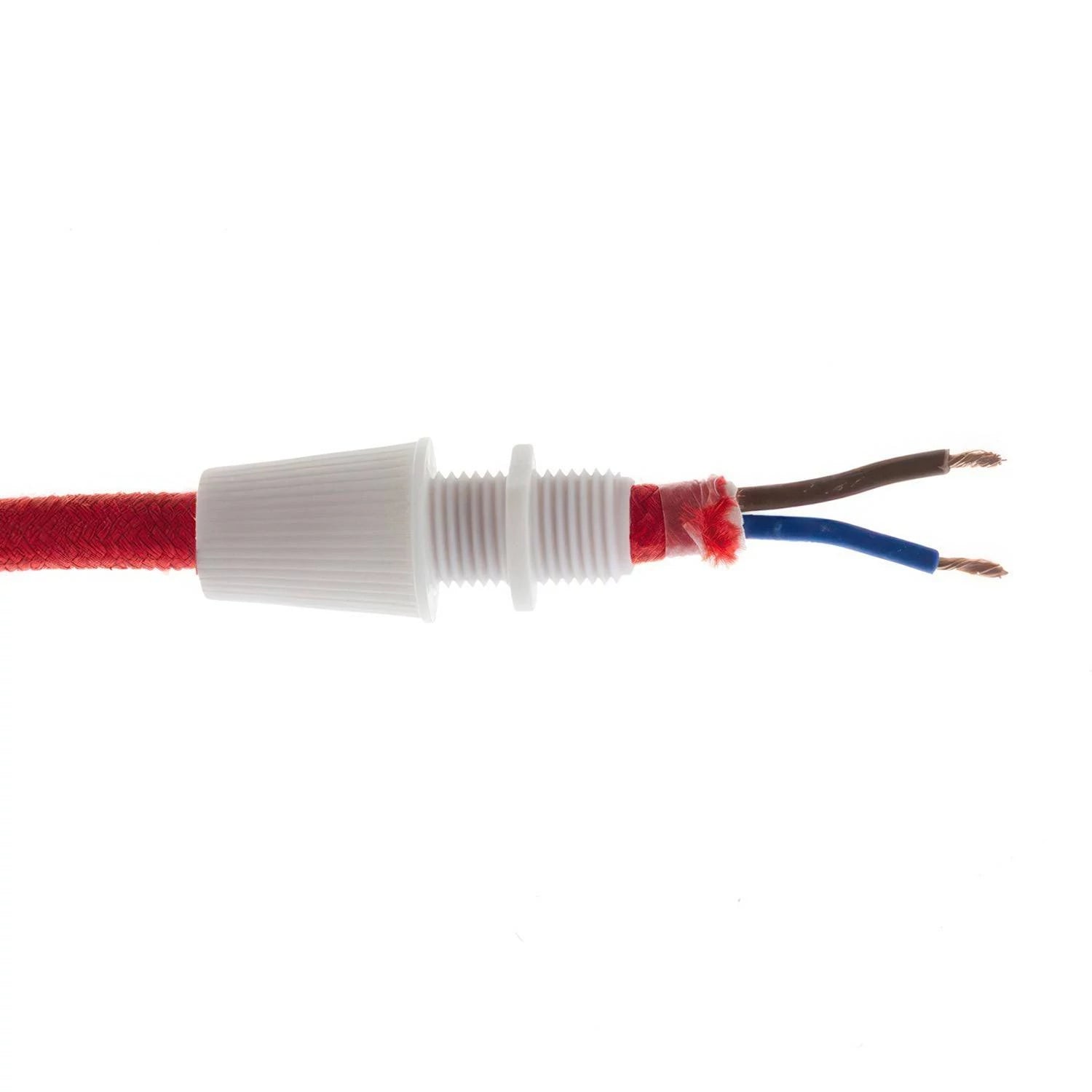 Durch Hinzufügen einer Zugentlastung wird sichergestellt, dass das Gewicht der Lampe sicher über das gesamte Kabel verteilt wird und nicht nur an den Kupferdrähten hängt. Mit der Kappe verleihen Sie der Fassung oder dem Baldachin ein schönes Finish und können sicher sein, dass das Kabel richtig befestigt ist.
