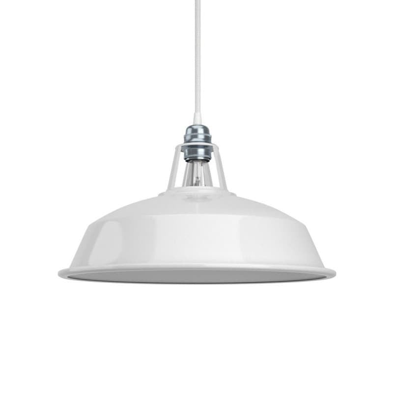 Dieser stilvolle, industriell aussehende Lampenschirm ist insgeheim eine Anspielung auf die englische Werkslampe 'Coolicon'. Ein wirklich harter Klassiker, der in den 1930er Jahren zur Beleuchtung von Fabriken und Werkstätten verwendet wurde.